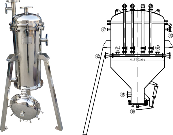 過濾器外殼采用316L或304優(yōu)質(zhì)不銹鋼制造,內(nèi)外鏡面拋光處理,過濾芯采用鐵棒,使其具備了耐腐蝕、耐高溫、耐沖擊、無毒、無微粒脫落、不吸附藥液成分、使用壽命長(zhǎng)(正常使用壽命4-5年)、易清洗、可再生的特性;鐵棒濾芯屬于深層過濾不僅在鐵棒表面形成一層有間隙的致密濾層,起到過濾作用,而且顆粒還可以緊附在孔道的壁面上形成’‘架橋現(xiàn)象”,攔截住比欽棒孔徑小的顆粒,提高了過濾精度。