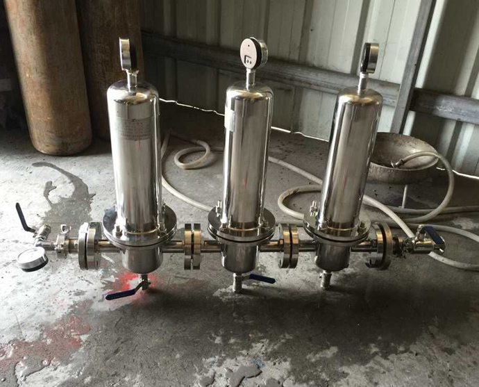 濾芯采用疏水性聚四氮乙烯或聚丙烯折疊式微孔濾膜。濾器為優(yōu)質(zhì)進(jìn)口不銹鋼(304/316L),按GMp標(biāo)準(zhǔn)設(shè)計(jì)制造,高效、節(jié)能、安全、可靠,廣泛用于發(fā)酵空氣,針劑用空氣、情性氣體的凈化(可作為空氣過菌器、分過濾器)、蒸餾水罐的“呼吸器”。除菌氣體過濾器是專為制藥工業(yè),食品工業(yè)的貯罐氣體交換時(shí)達(dá)到除菌之目的而設(shè)計(jì)制造的。氣體過濾精度為 0.02um 微粒,效率達(dá)到99.99%。過濾能力可在0.1—1OOm3/min范圍內(nèi)選用。介質(zhì)厚度僅為0.8mm ,孔徑均勻穩(wěn)定、氣體阻力小、再生方便。濾芯在一般情況下可使用二至三年,再生后可延長(zhǎng)四到六年。也可用于滅菌蒸汽的過濾。此過濾器可徹底解決空氣的染菌問題,而且可提高消毒滅菌的質(zhì)量,從而達(dá)到GMP和無菌衛(wèi)生要求。