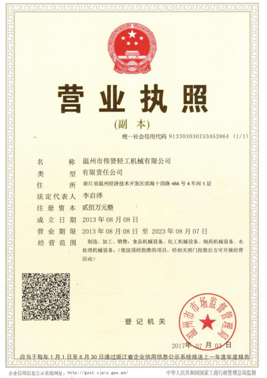 溫州市偉賢輕工機械有限公司 地址:浙江溫州濱海工業(yè)園區(qū)十四路466號 電話:0577-86374818 86899137 86899139 傳真:0577-86899138 手機/微信:13634277318 18858825318 QQ:243687277 郵箱:lzjxsb@163c.com 阿里旺鋪:lzjxsb.1688.com www.chinaweixian.com m.qykankan.com